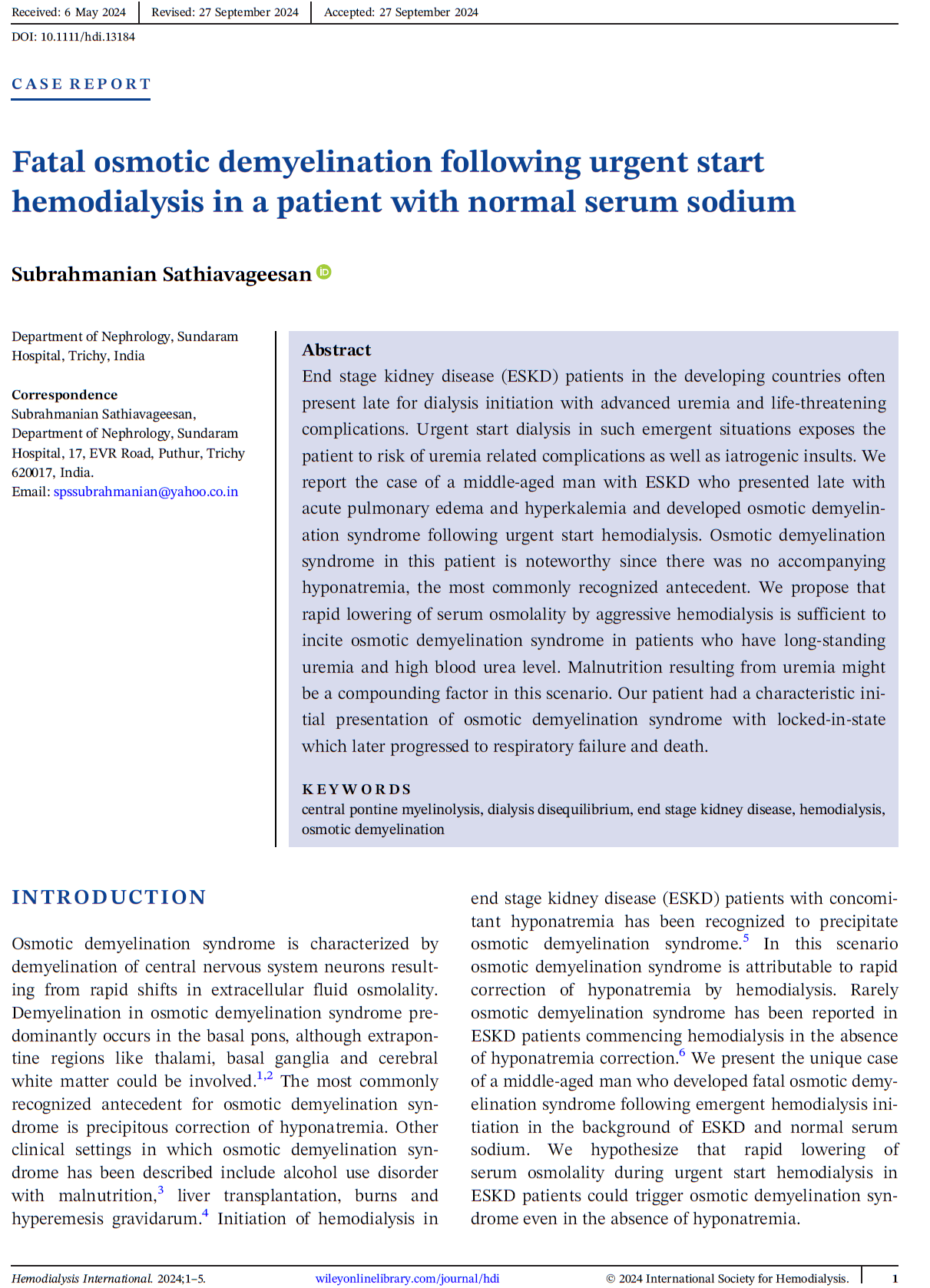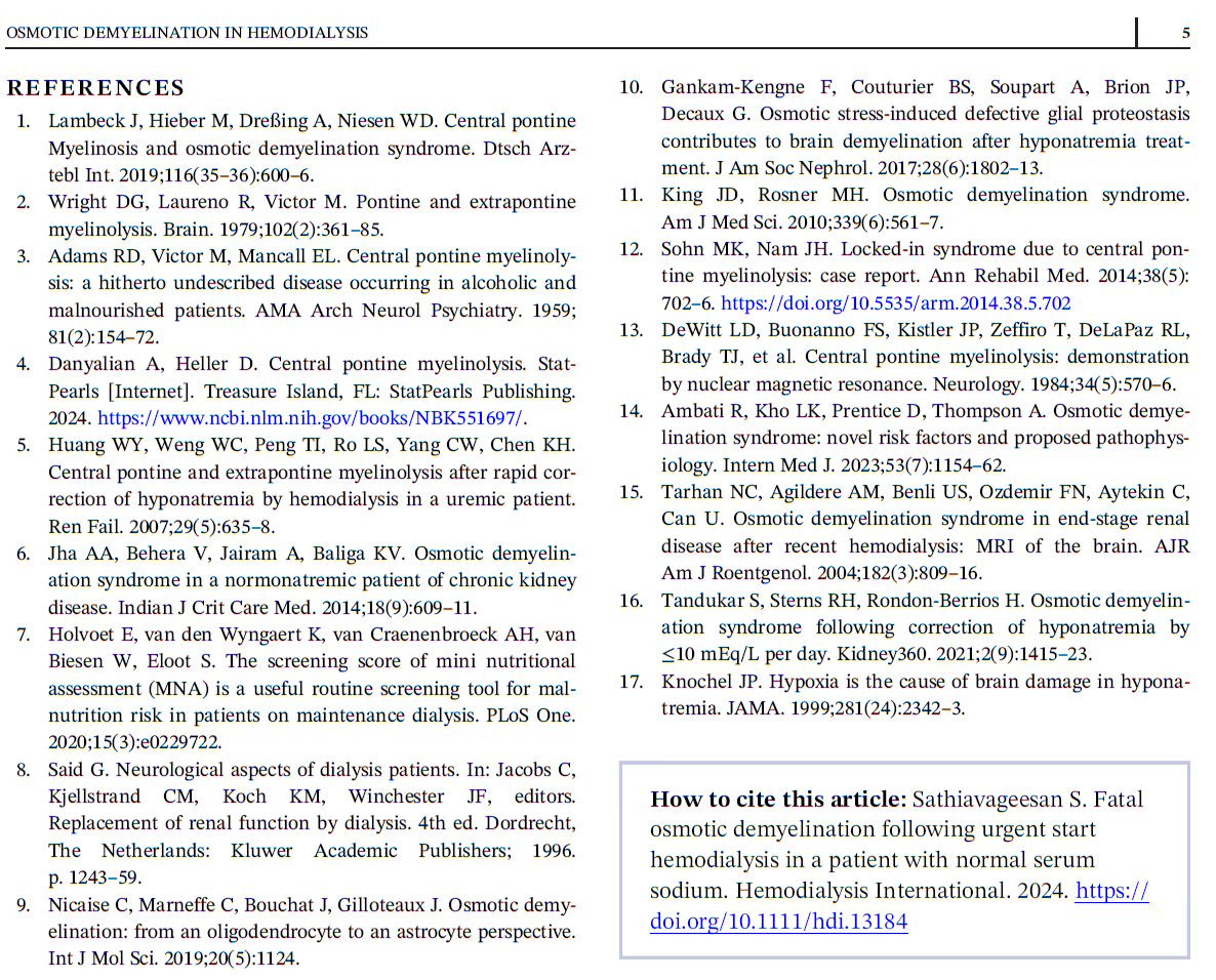 Fatal Osmotic Demyelination Following Urgent Start Hemodialysis In A Patient With Normal Serum Sodium