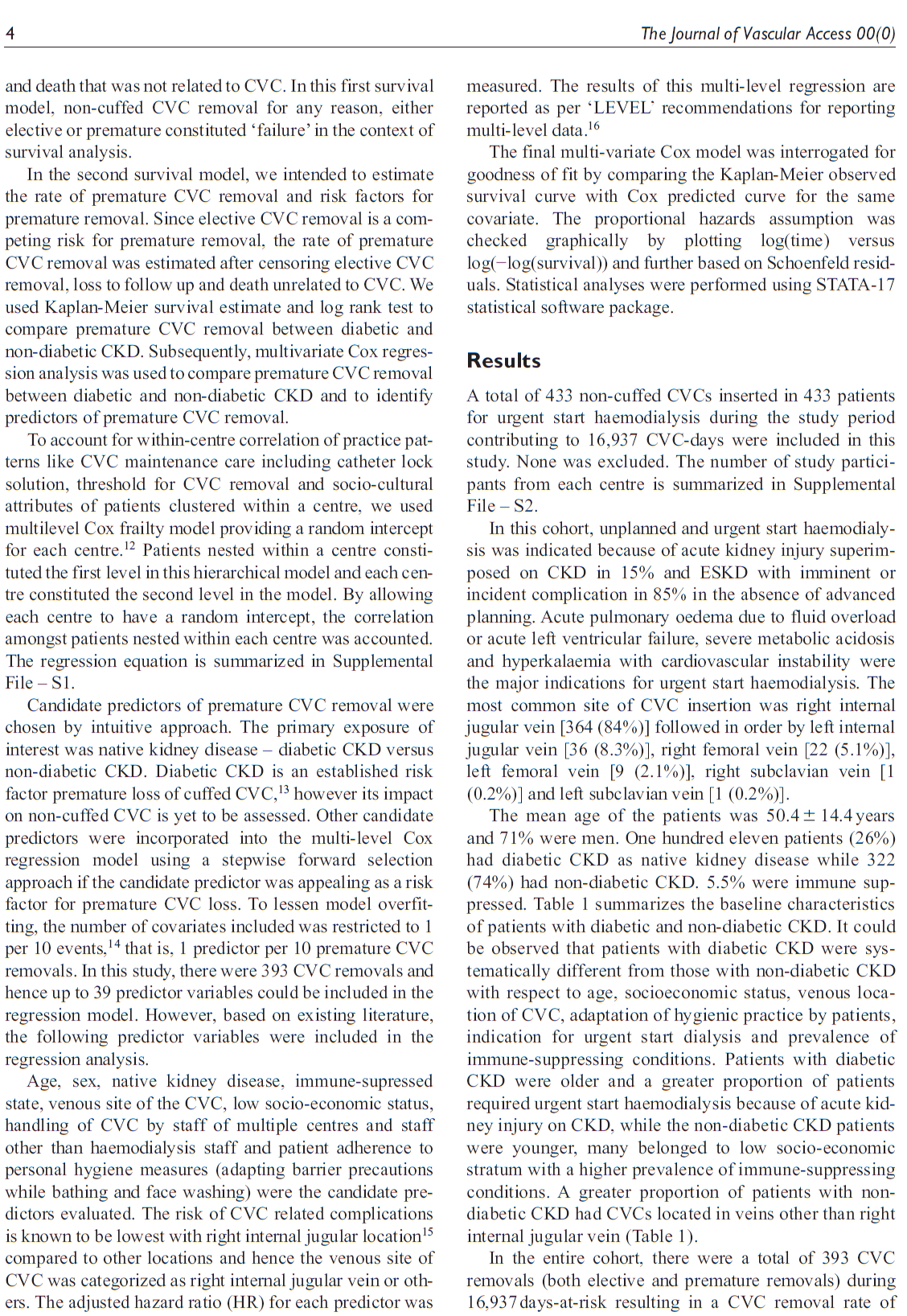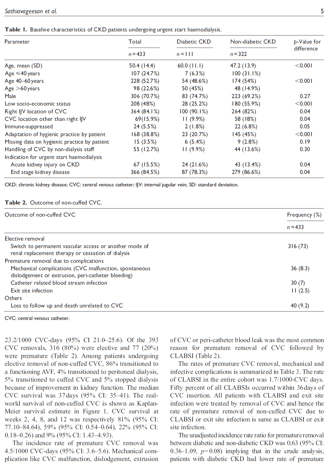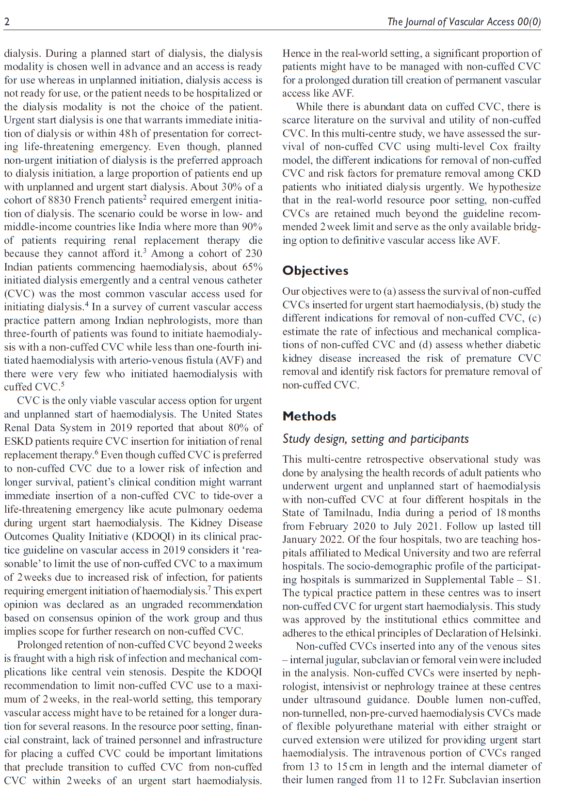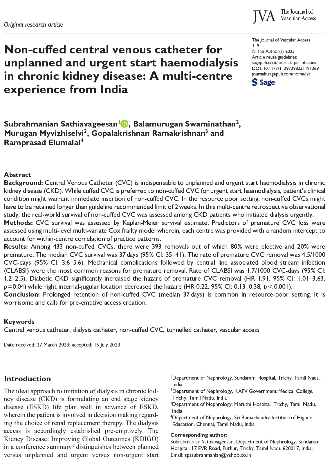 Non-Cuffed Central Venous Catheter For Unplanned And Urgent Start Haemodialysis In Chronic Kidney Disease- A Multi-Centre Experience From India